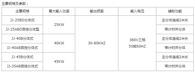 這種產(chǎn)品最適合于很多加熱用途,如:(1)齒輪、軸等零件熱處理(2)金剛石工具釬焊,如磨盤,修邊輪等 (3)復(fù)合鍋底釬焊  (4)復(fù)合管加熱  (5)不銹鋼器具退火沖壓成型  (6)木工刀具等釬焊  (7)各種金屬熔煉 (8)銅管接頭釬焊(空調(diào)、潔具行業(yè))等;